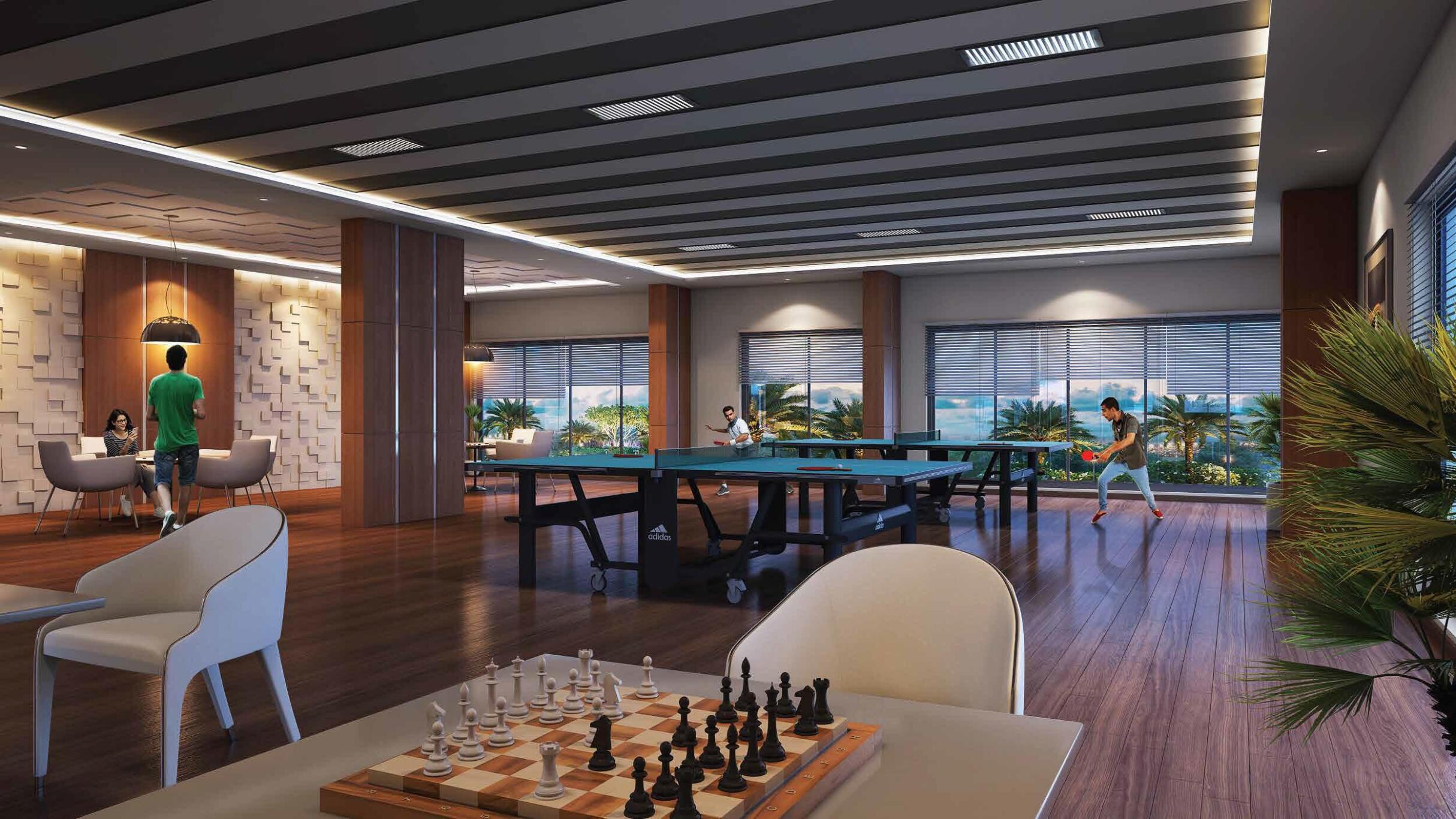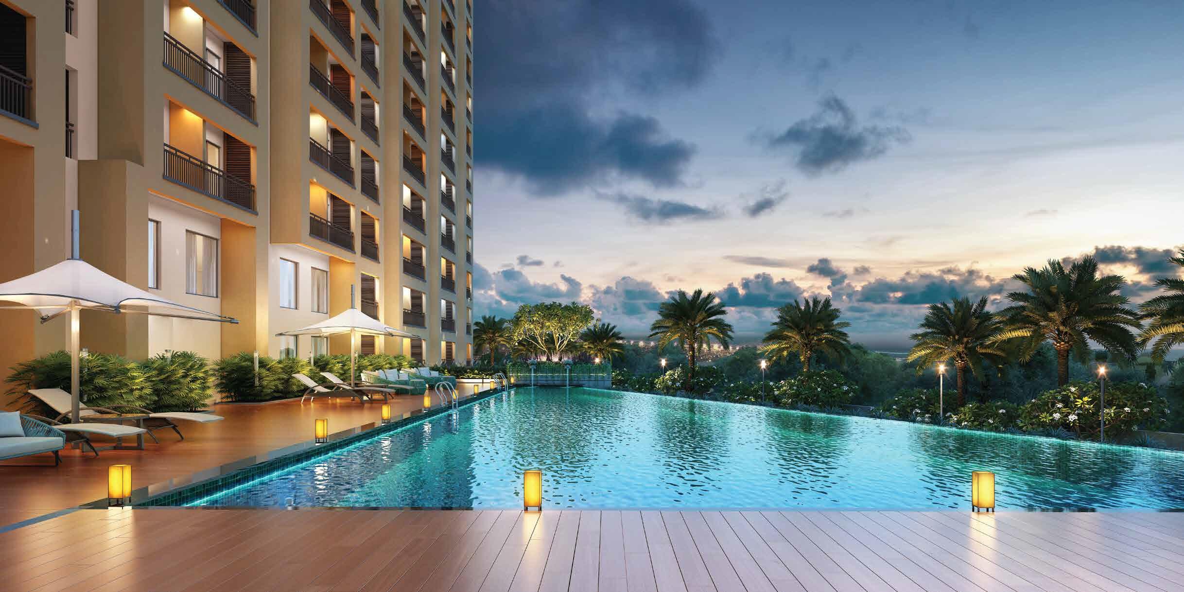 Clubhouse, swimming pool, gym, banquet hall, AV room, and landscaped open spaces.